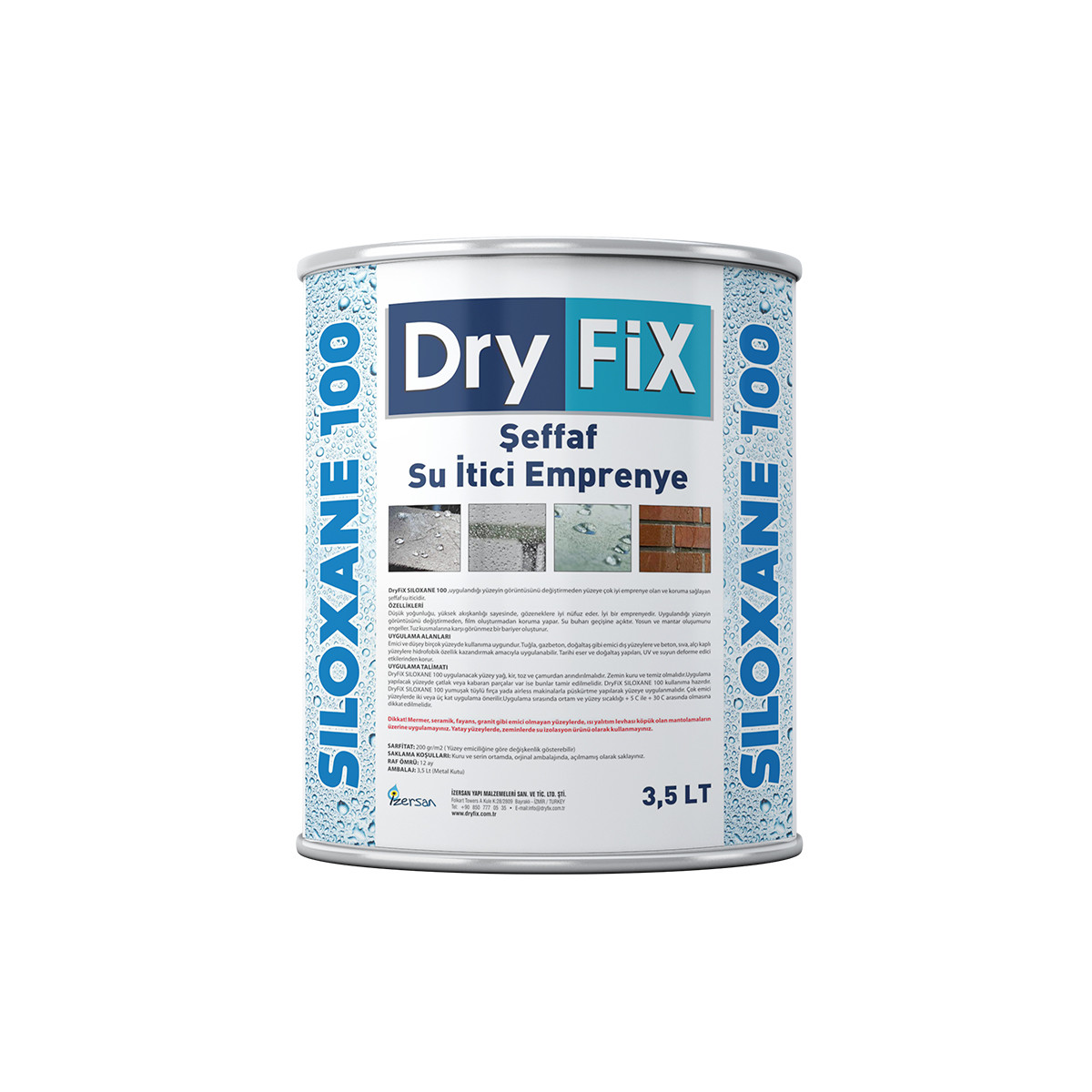 DryFiX Şeffaf Su İtici SILOXANE 100 ,uygulandığı yüzeyin görüntüsünü değiştirmeden yüzeye çok iyi emprenye olan ve koruma sağlayan şeffaf su iticidir.